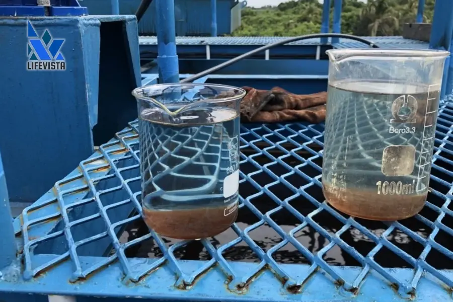 - Bể lắng: Nếu nước thải có độ đục cao, có thể thêm PAC vào bể lắng để tăng hiệu suất lắng cặn. Tránh sử dụng dư thừa hóa chất trợ lắng vì có thể ảnh hưởng đến chất lượng nước sau xử lý.